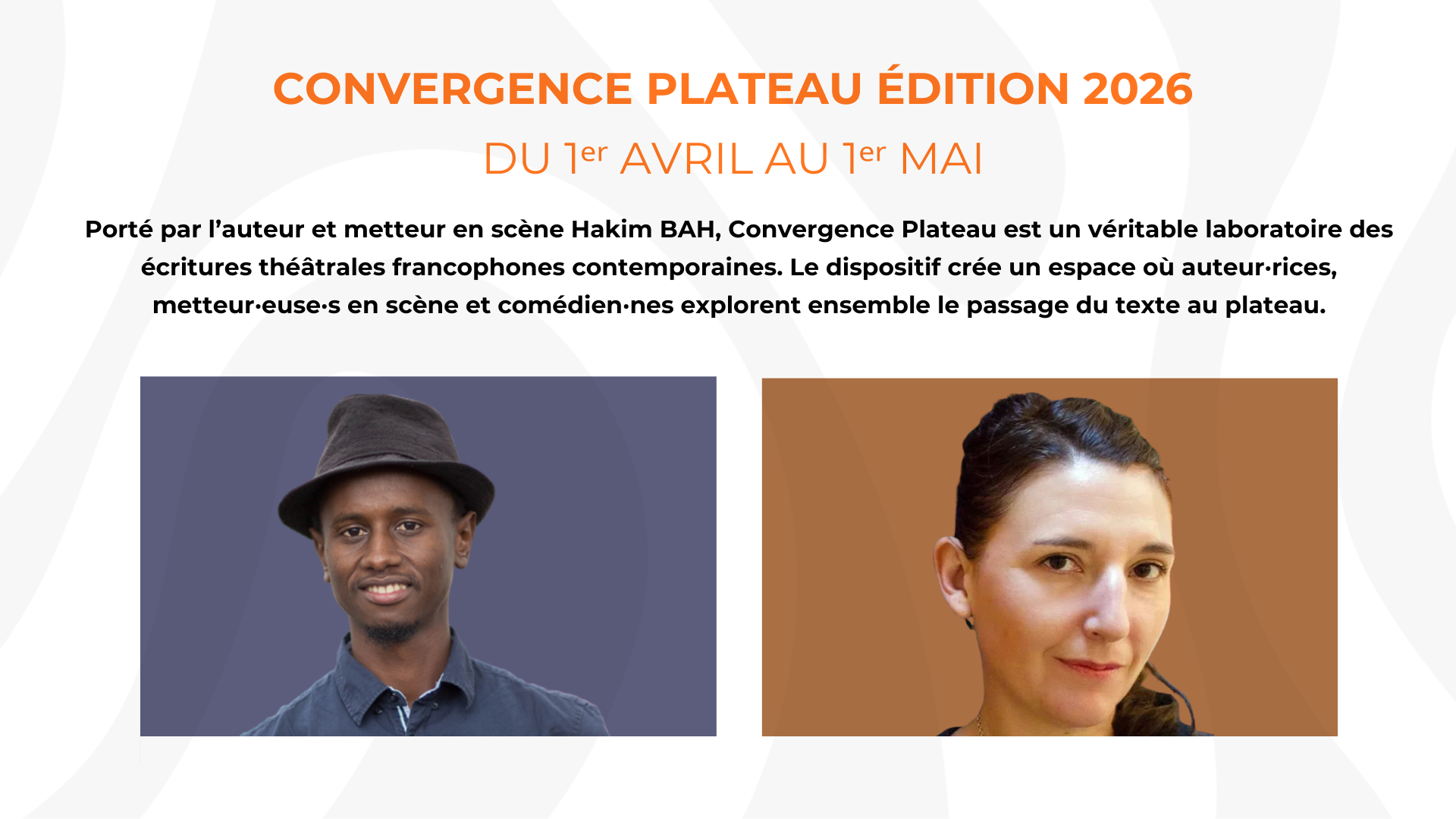 Porté par l’auteur et metteur en scène Hakim BAH, Convergence Plateau est un véritable laboratoire des écritures théâtrales francophones contemporaines. Le dispositif crée un espace où auteur·rices, metteur·euse·s en scène et comédien·nes explorent ensemble le passage du texte au plateau.