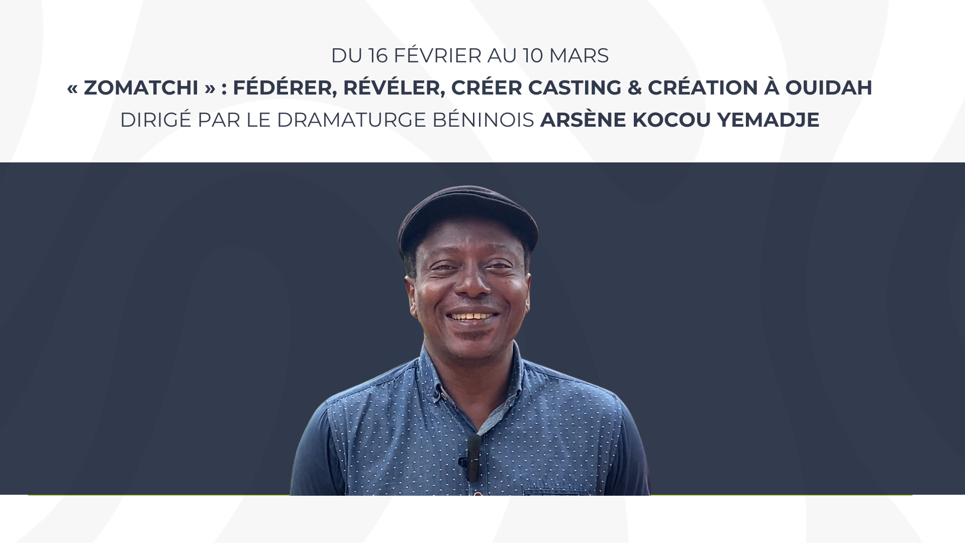 16feb(feb 16)8:00 pm10mar(mar 10)5:30 pmRésidence « ZOMATCHI » : fédérer, révéler, créer Casting & création à Ouidah dirigé par le dramaturge béninois Arsène Kocou YEMADJE